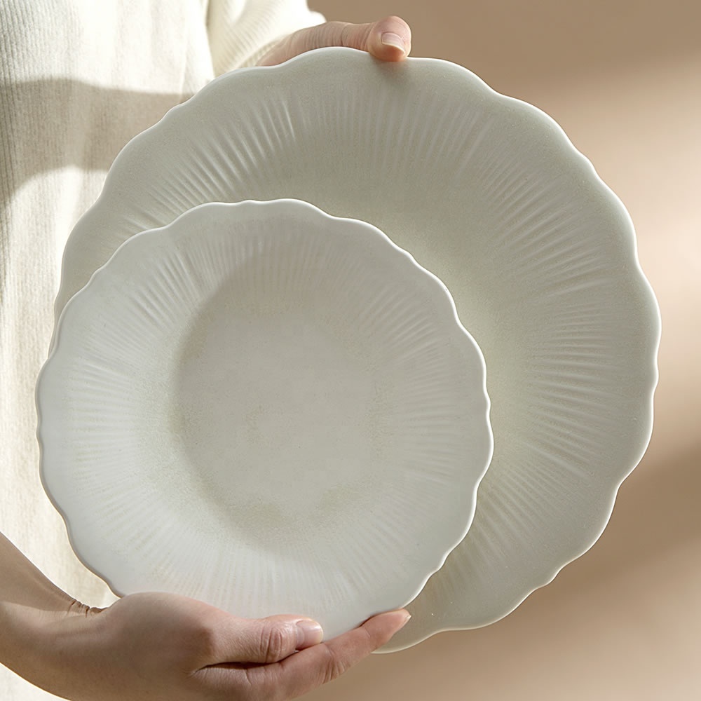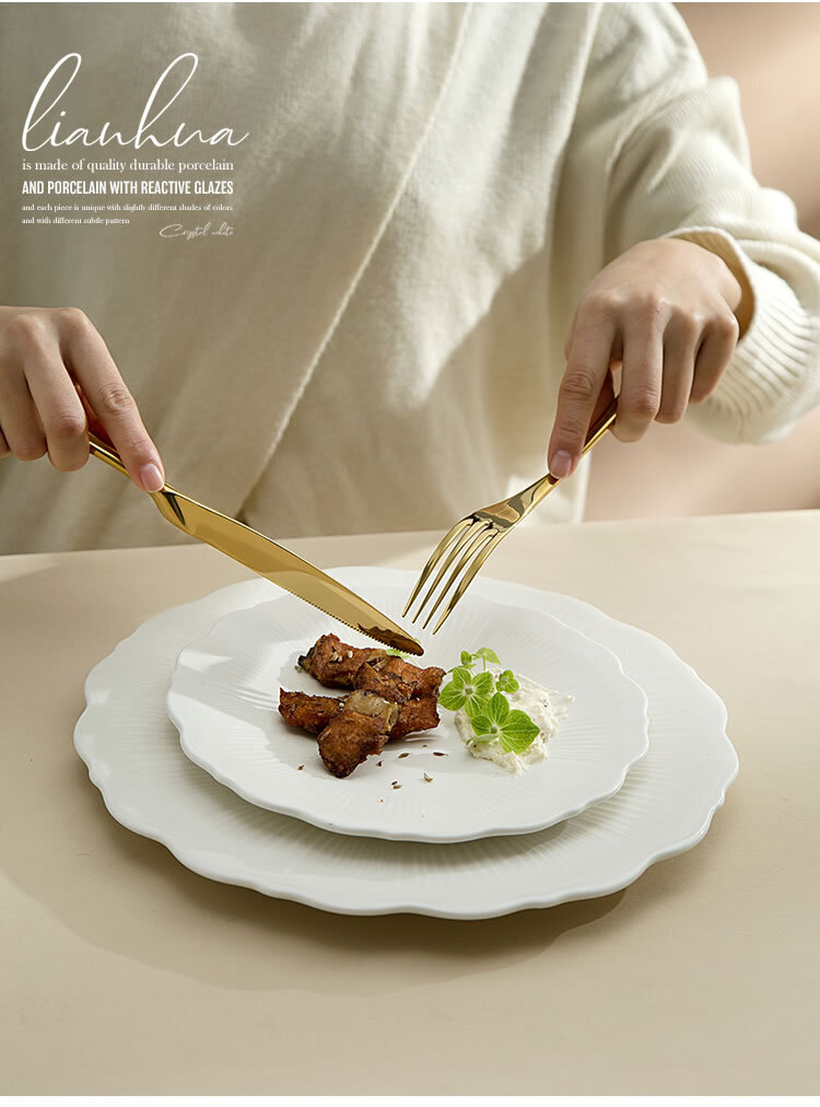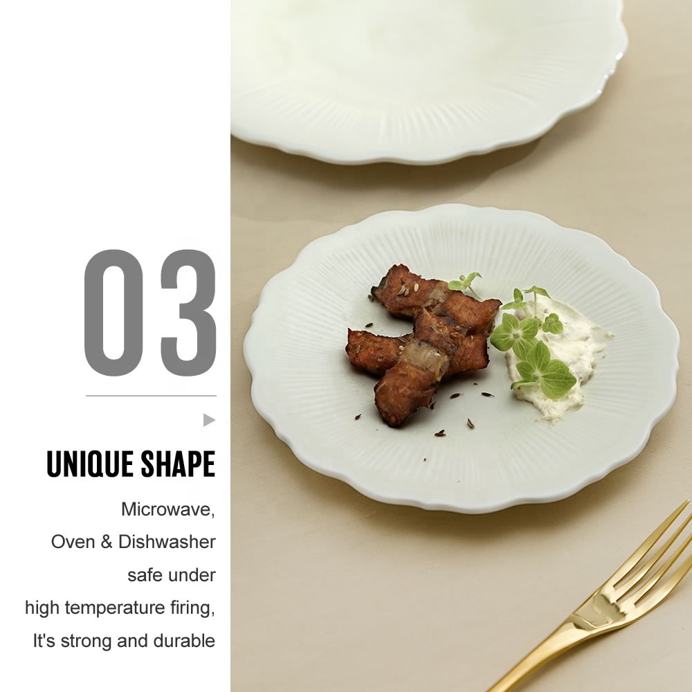 Factory Direct Wholesale Irregular Flower Shape Matte Porcelain Plate,Unique Lotus Ceramic Dessert Flat Plates For Wedding