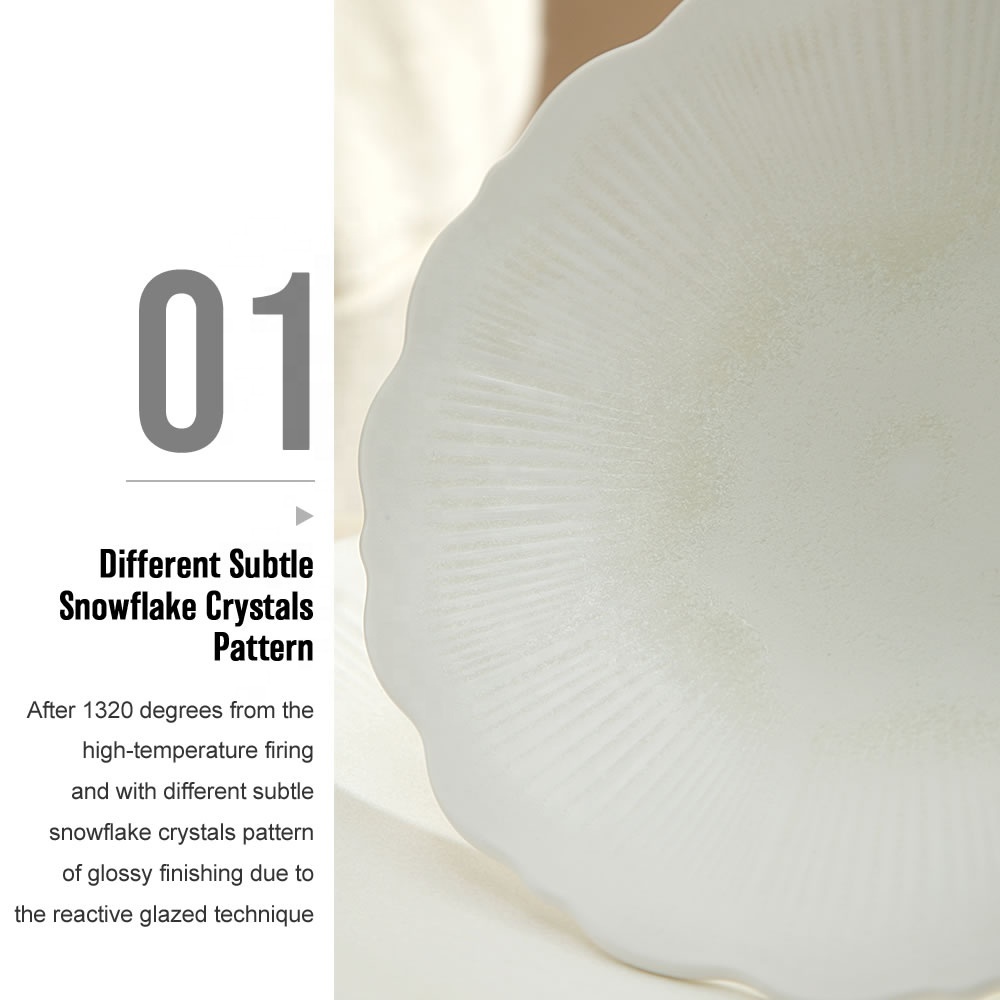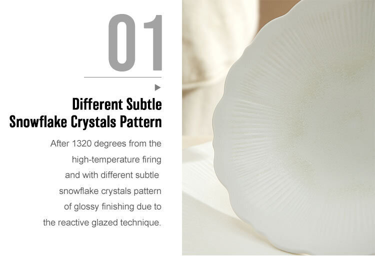 The LIANHUA series inspired by the simple, pure and fluent array of nature,by reaction glaze,every application on the porcelain body brings out snowflake crystals texture when met with the fire,